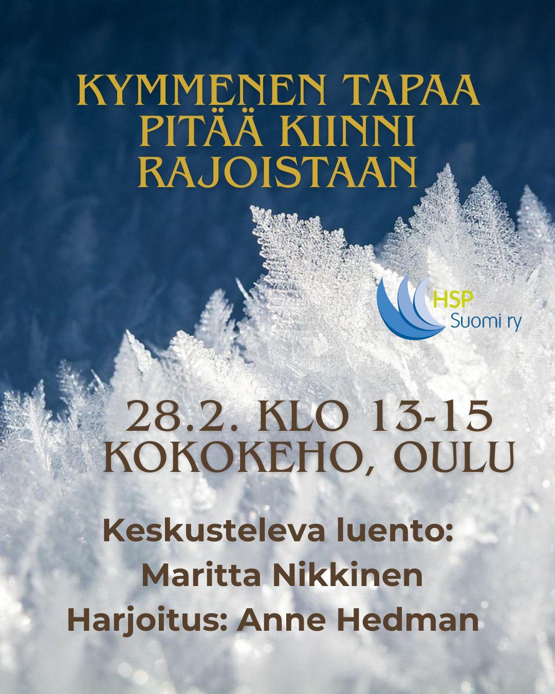HSP Kohtaamispaikka on helmikuussa tauolla ja jatkaa maaliskuussa HSP Voimaantumispaikkana, Lähteen Valo-tilassa. Seuraavat tapaamiskerrat: 25.3 ja 24.4., tuttuun tapaan klo 15-17. Keskustelemme…
