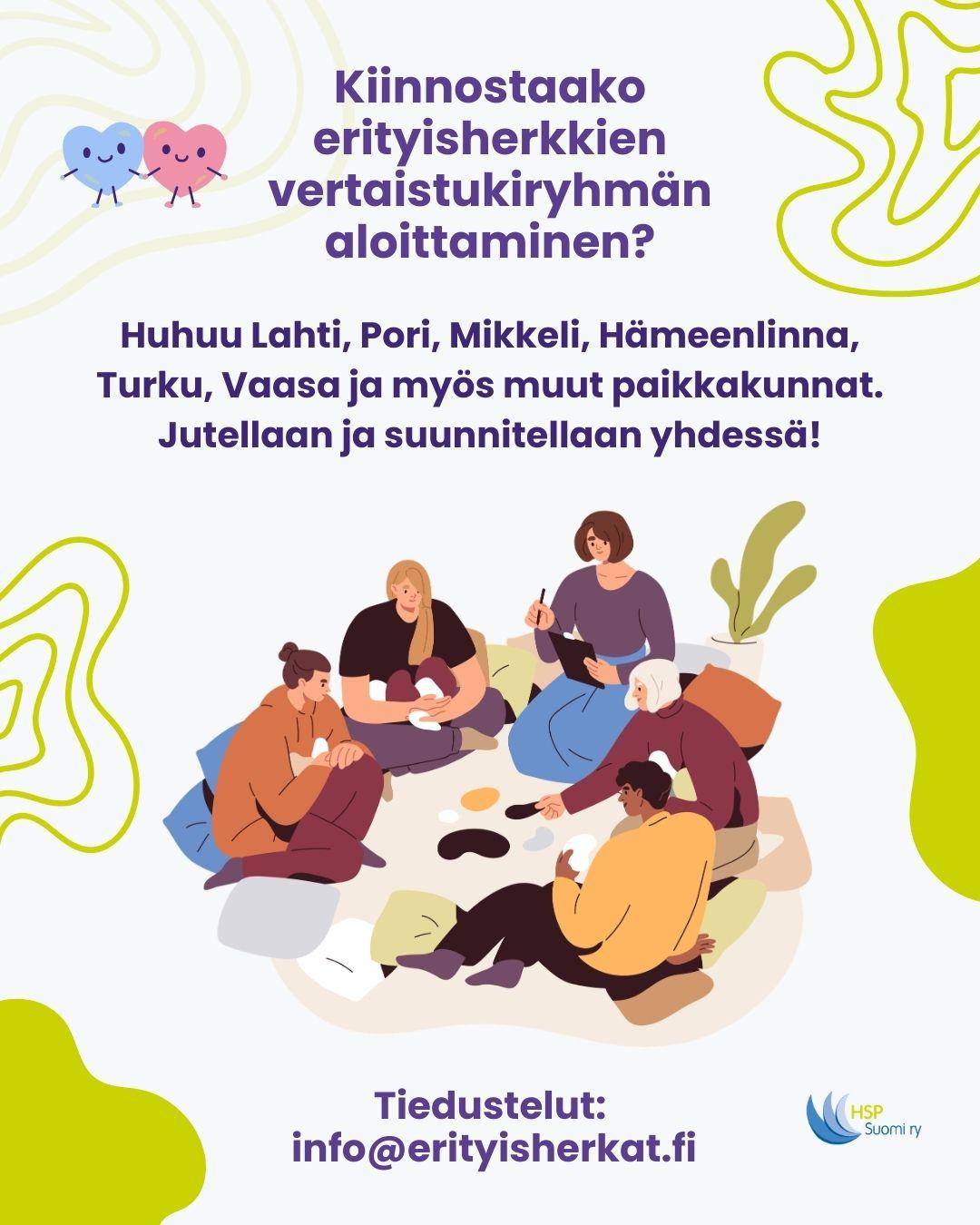 HSP vertaismiehet kokoontuu Helsingissä, Töölön kirjastossa kerran kuussa. Meitä on ollut max 8, jonka olemme kokeneet sopivaksi, tilakin asettaa rajan. Olemme puolisuljettu ryhmä, toisen uuden ryhmän…